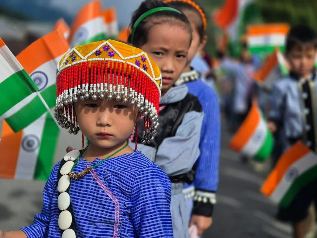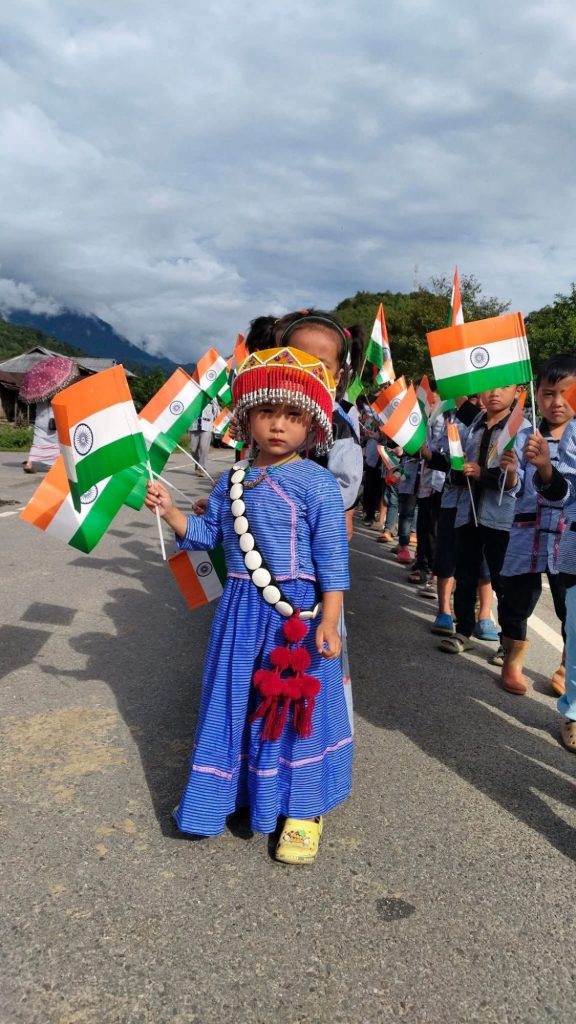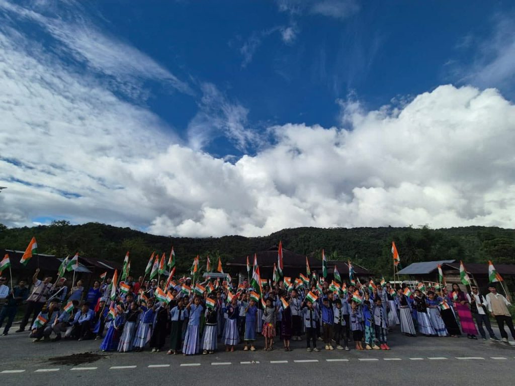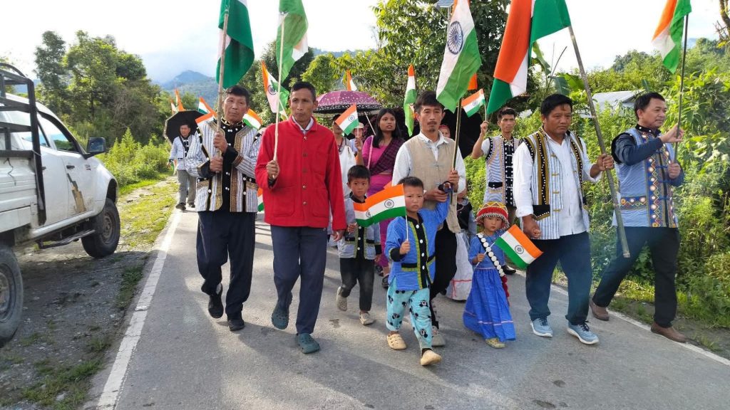 Tiranga Yatra held in Gandhigram Village, Changlang District, Arunachal Pradesh, India.